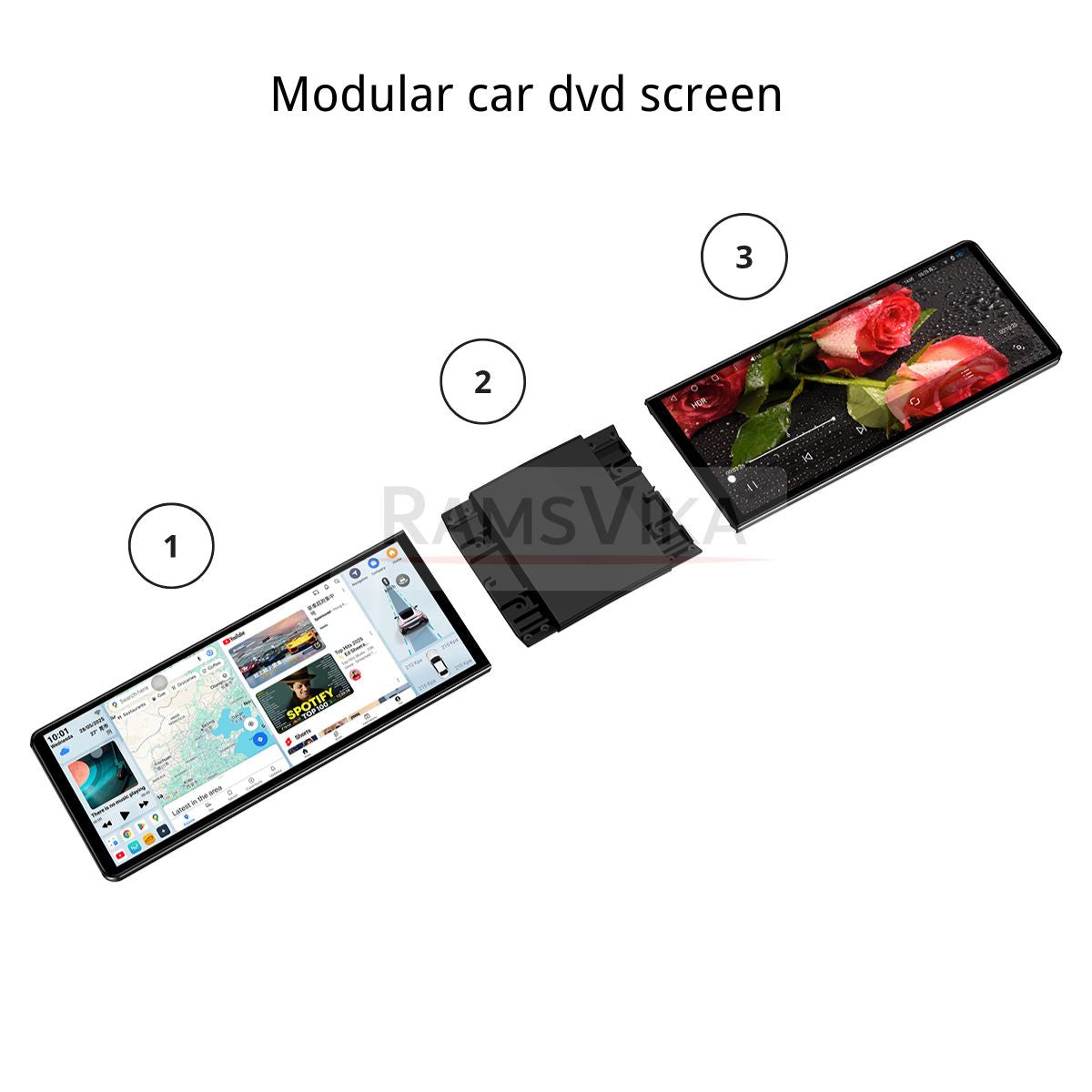 * 【Adapters of different sizes】Comes with 1-inch, 3-inch, 5-inch, and 10-inch mounting adapters, compatible with most car models and dashboards. Whether you need a dual car TV screen with Bluetooth or a dual car DVD player replacement, this screen fits the bill.