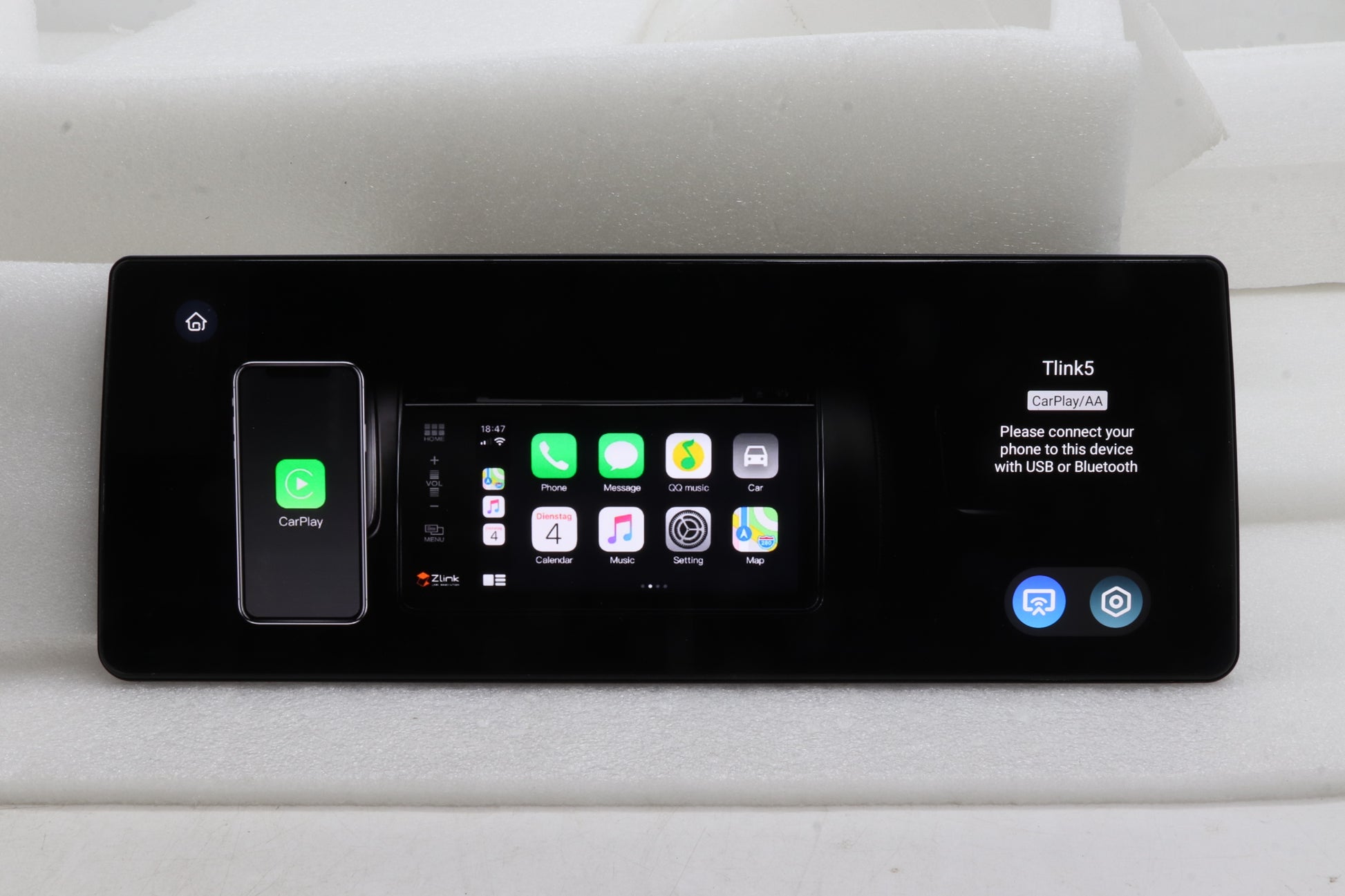 Most Android radios support AndroidAuto and Apple CarPlay. You can connect iPhone or Android smartphones, and display their screen on the radio. With Android phones, you can also control your phone through the touchscreen of the radio.