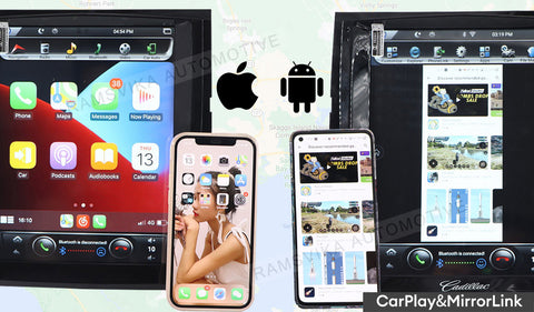 Most Android radios support AndroidAuto and Apple CarPlay. You can connect iPhone or Android smartphones, and display their screen on the radio. With Android phones, you can also control your phone through the touchscreen of the radio.