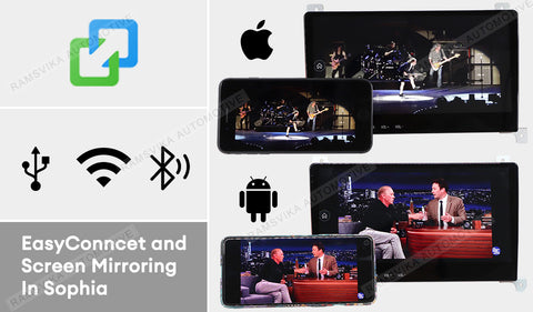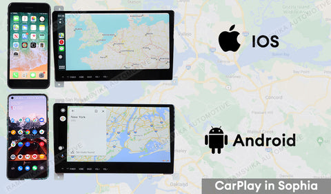 Most Android radios support AndroidAuto and Apple CarPlay. You can connect iPhone or Android smartphones, and display their screen on the radio. With Android phones, you can also control your phone through the touchscreen of the radio.